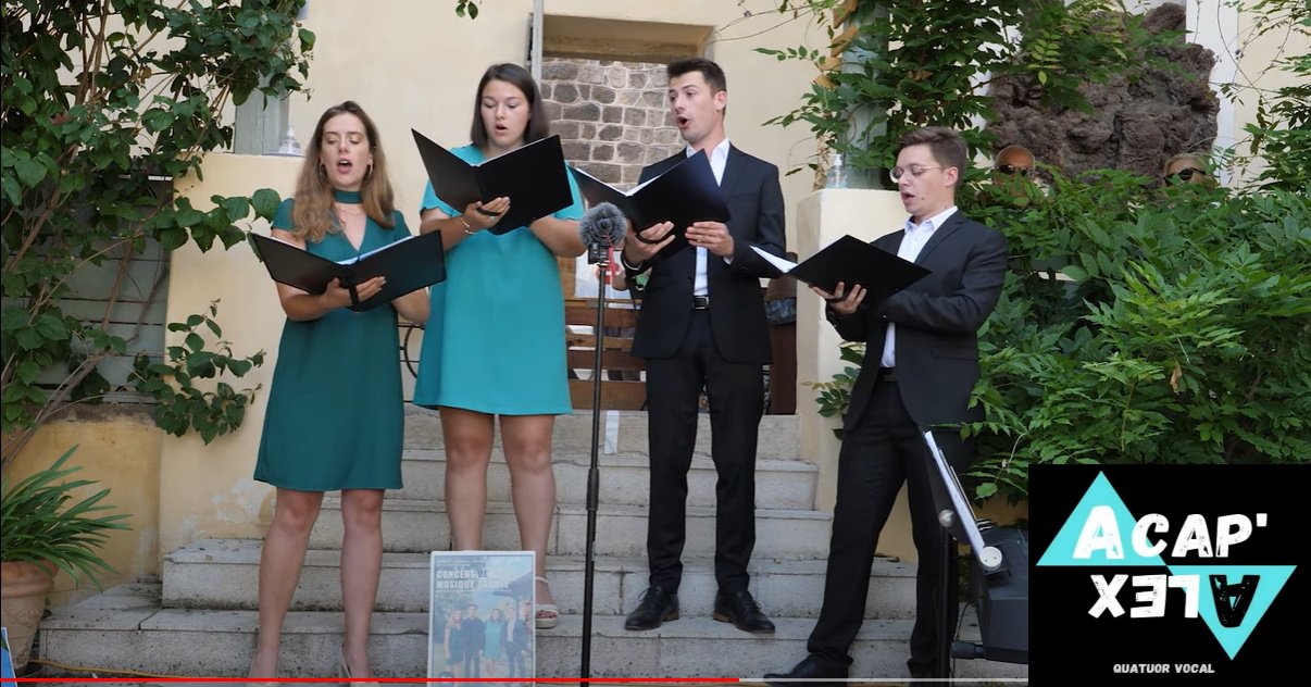 - A 20h30, concert du quatuor Acap’Alex, 4 amis étudiants passionnés par la musique et le chant présenteront un répertoire éclectique qui s étend de la musique médiévale à la musique pop d aujourd’hui… 🎶