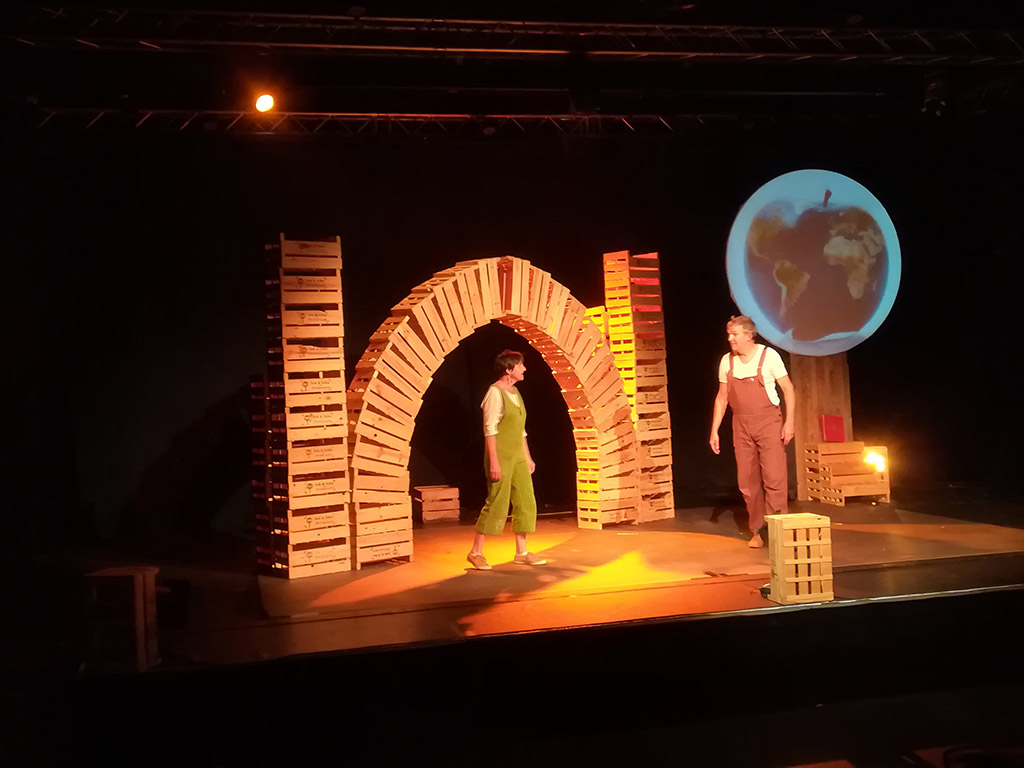 Samedi 23 septembre, comme point d’orgue de le fête du “mois de la création Dieu”, a eut lieu un spectacle à Vorey : “Au commencement le VERT était dans la pomme“.